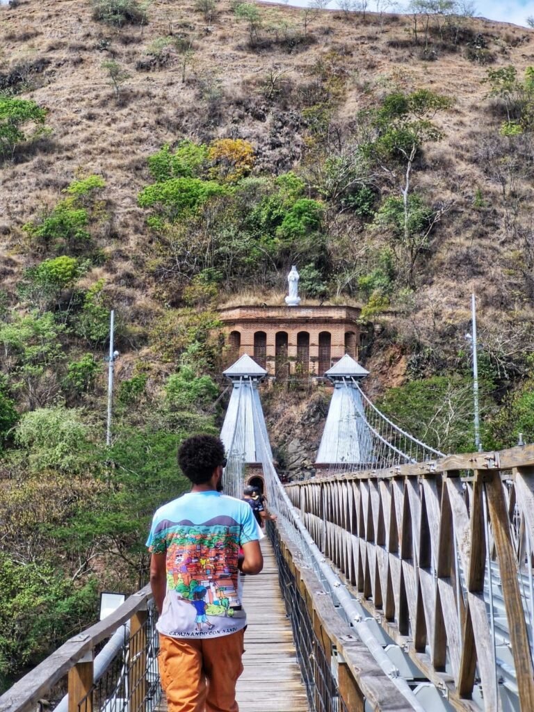 Visitamos el puente colgante más largo de Latinoamérica en su época (1895). Patrimonio Nacional de Colombia. Puedes caminar sobre él y sentir su balanceo histórico.